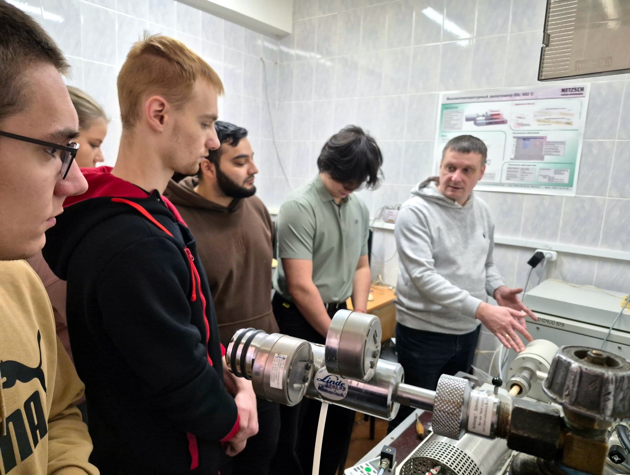 04 февраля 2026 г. В Институте Материаловедения прошел день открытых дверей, в котором приняли участие студенты технических специальностей 3-5 курсов ДВГУПС г. Хабаровска. Цель мероприятия популяризировать науку, показать возможности обучения в аспирантуре института по специальности 2.6.17. "Материаловедение". Была проведена экскурсия по лабораториям Порошковой металлургии, Физико-химических основ технологии материалов, Конструкционных и инструментальных материалов. О своей работе рассказали к.т.н. Балахонов Д.И., к.т.н. Дворник М.И., к.х.н. Чигрин П.Г., к.ф.-м.н. Бурков А.А. Ребята активно интересовались построением карьеры в стенах института с желанием участвовать передовых исследованиях института в интересах Хабаровского края и России. Особый интерес вызвали установки для исследований, изготовленные сотрудниками Института Материаловедения.